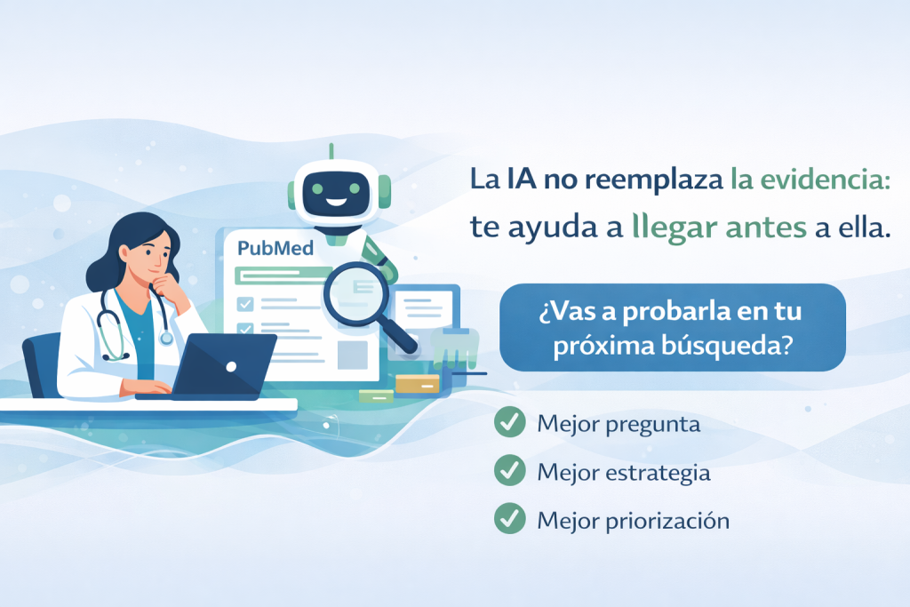 La IA aporta mucho más valor cuando se le pide una estructura de búsqueda que cuando se le pide una conclusión clínica. PubMed sigue siendo la fuente donde se localiza la evidencia; la IA actúa como capa de productividad.
