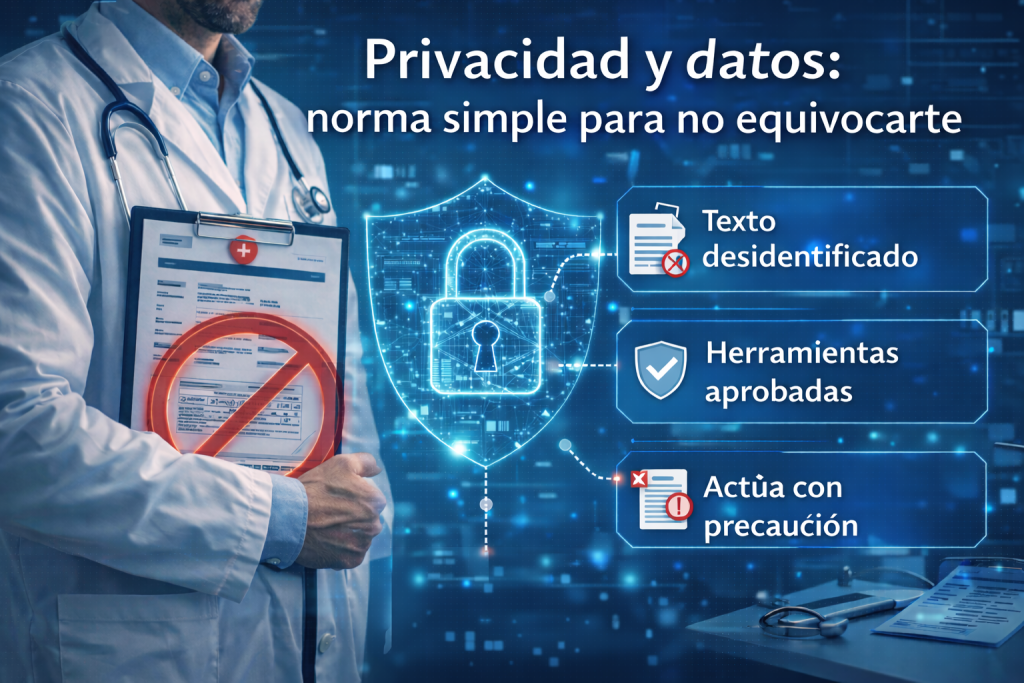 - Usa herramientas aprobadas por tu organización para cualquier contenido clínico real.
